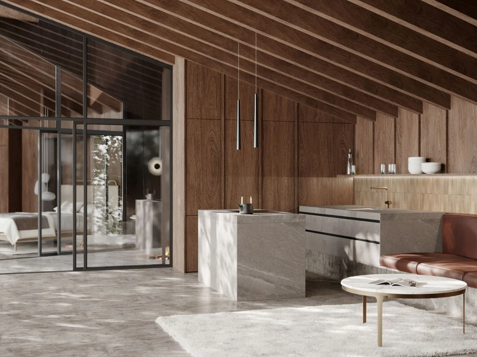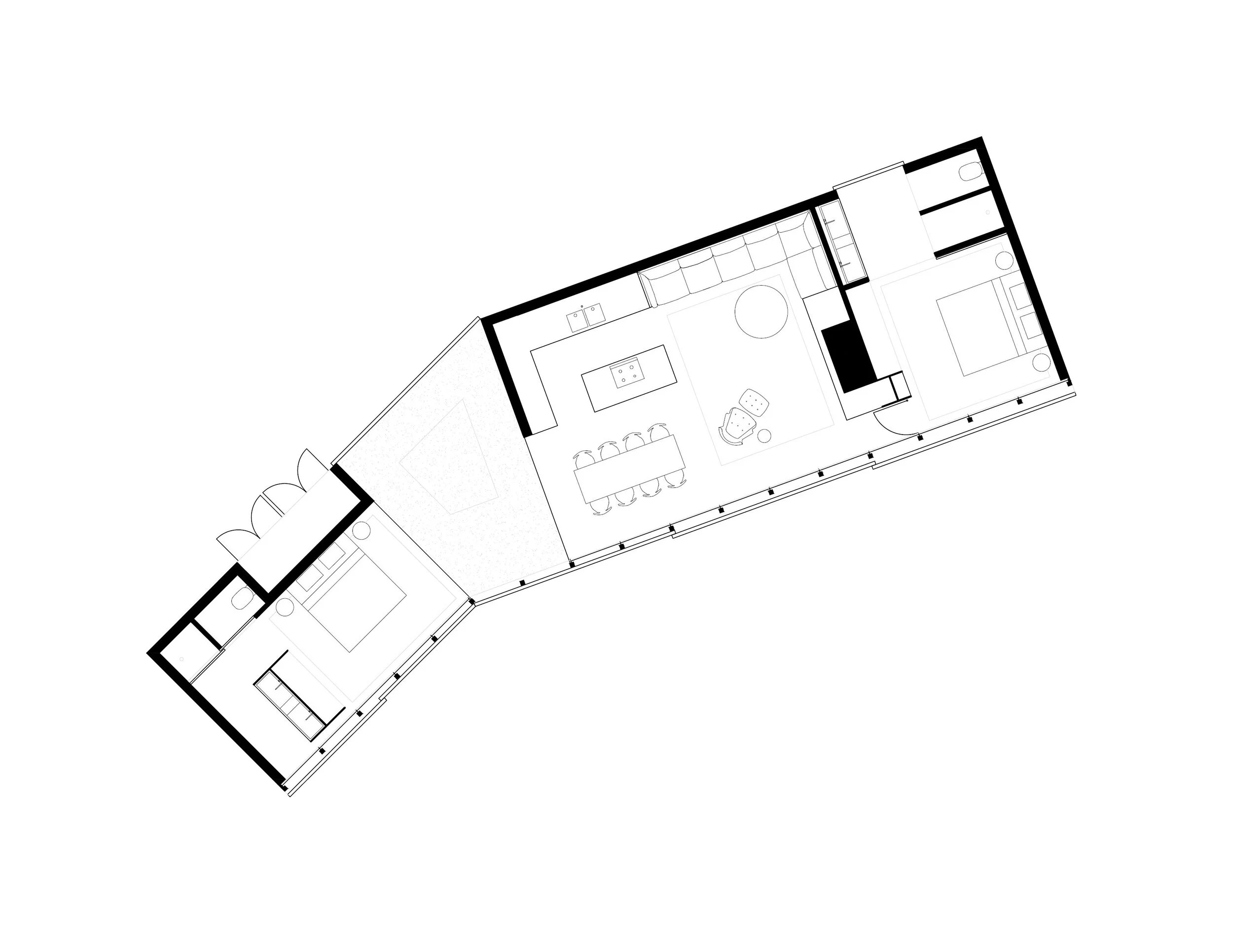The Mount Irvine House is located on a steep escarpment on the edge of the immense Wollemi National Park. Two wings, the main residence and a guest suite, protect a central hearth open to the sky